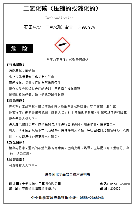产品名称:二氧化碳 版本:HY-SDS-2014