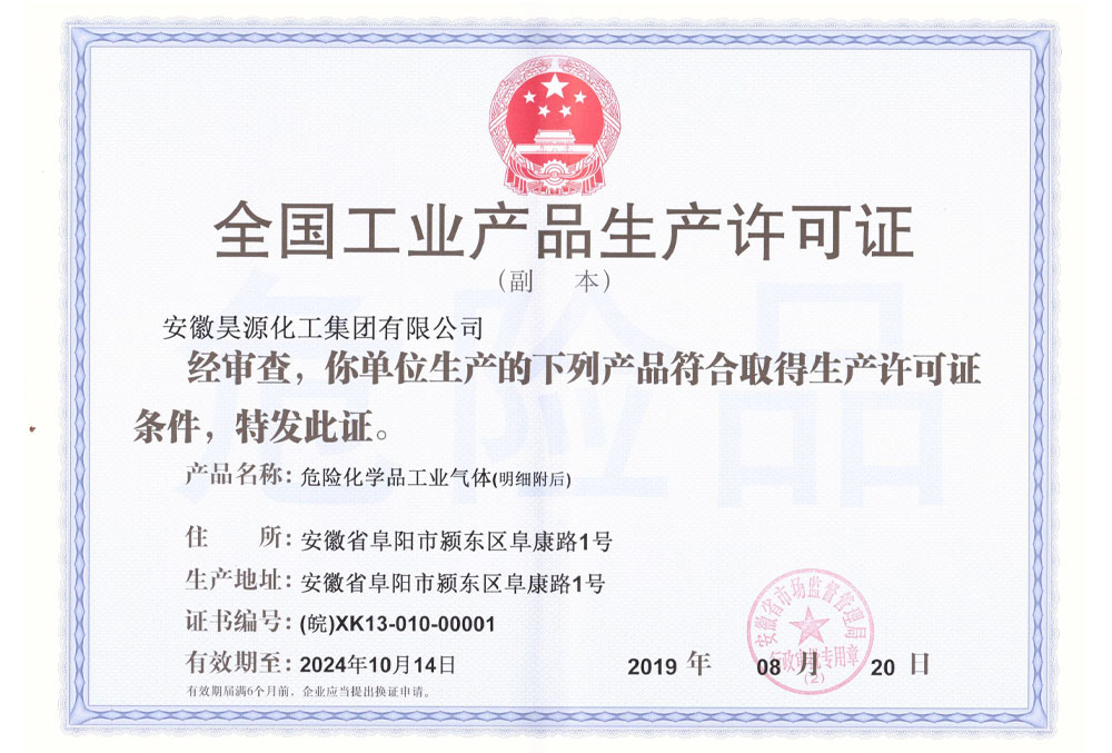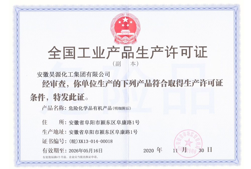 公司危化品工业生产许可证