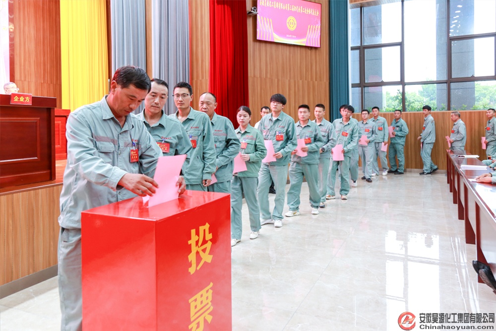 昊源公司第三届职工代表大会第二次全体会议审议通过了董事长凡殿才同志所作的工作报告、新修订的纪律管理规定、请假管理规定、安全管理工作报告、职代会实施细则,票决通过厂务公开细则及安徽昊源化工集团有限公司集体合同(草案)情况说明,并现场签订集体合同。
