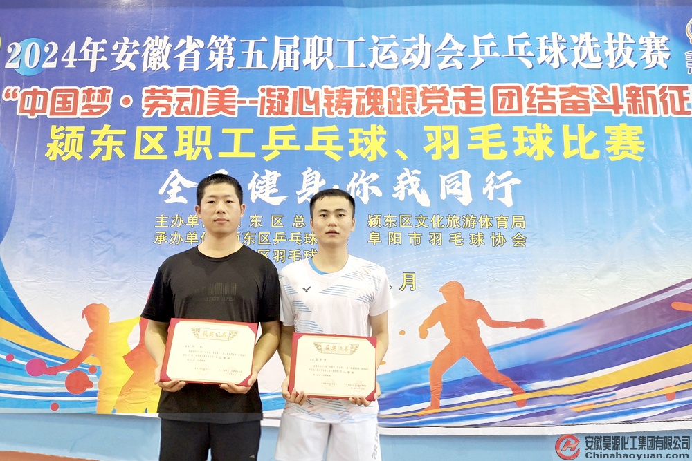 8月18日,由颍东区总工会和颍东区文旅局联合主办的 “中国梦•劳动美——凝心铸魂跟党走 团结奋斗新征程”颍东区乒乓球、羽毛球比赛,在颍东区全民健身中心隆重举行,昊源公司积极组织员工参加比赛并荣获佳绩。
