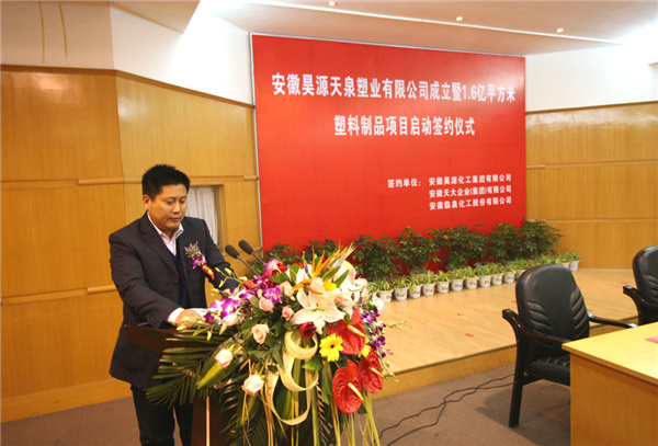 签约仪式上,昊源集团饶金铎董事长信心百倍地说:“我们坚信,在市委、市政府和社会各界的大力支持下,天大集团、临化股份、昊源集团精诚团结合作,安徽昊源天泉塑业有限公司必将取得骄人的发展成果,必将为阜阳的经济建设做出新的贡献!”