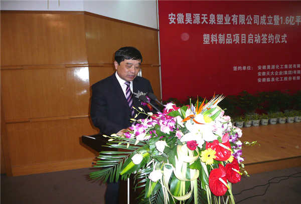 签约仪式上,昊源集团饶金铎董事长信心百倍地说:“我们坚信,在市委、市政府和社会各界的大力支持下,天大集团、临化股份、昊源集团精诚团结合作,安徽昊源天泉塑业有限公司必将取得骄人的发展成果,必将为阜阳的经济建设做出新的贡献!”